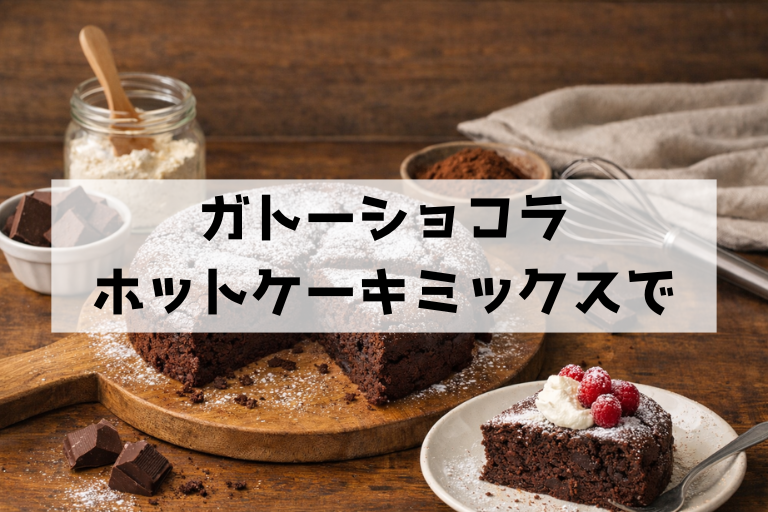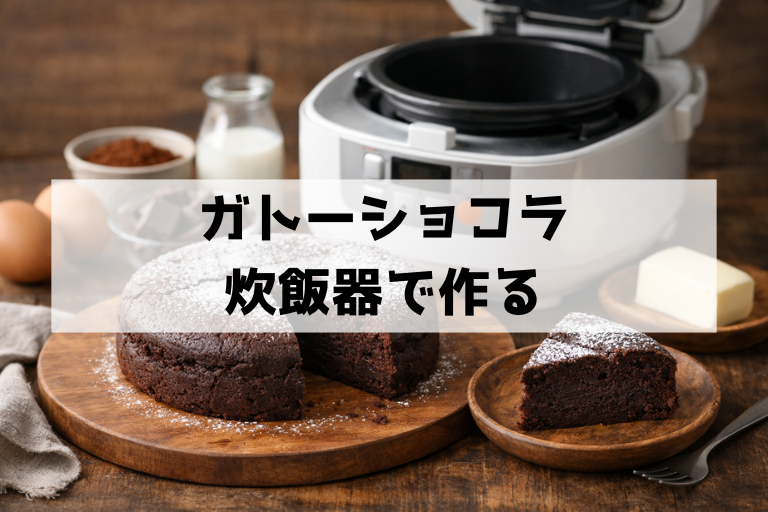 時短で作る方法として人気なのが、炊飯器で焼く、ホットケーキミックスを使う、の2つです。どちらも便利ですが、オーブンとは熱の入り方が違うため「同じ味と食感」にはなりにくい点だけ最初に知っておくと気が楽です。炊飯器は底から加熱するので、中心まで火が入る前に底だけ固くなりがちです。生地を厚く入れすぎない、予熱代わりに材料を常温にする、途中で一度開けて表面の状態を確認するなどで安定します。ホットケーキミックスはふくらみやすく、粉の存在感が出やすいので、ガトーショコラというより「チョコ味のケーキ」に寄ります。ガトーショコラらしさを残すなら、チョコをしっかり増やし、混ぜすぎないことが重要です。混ぜすぎると粉が働いてふくらみすぎ、冷めたときにボソッとしやすくなります。時短ルートは、普段のおやつや失敗したくない日に向いています。作り方のコツや注意点は、こちらの記事で詳しく見られます。